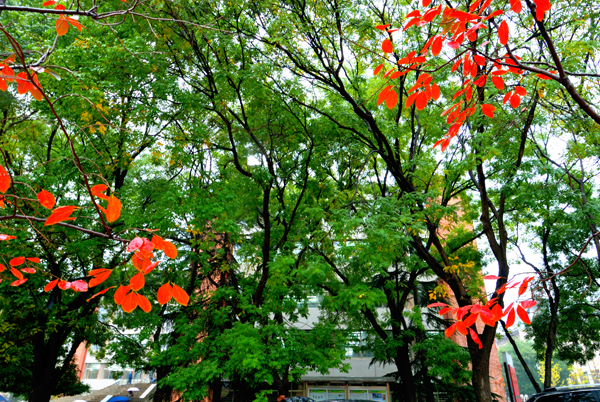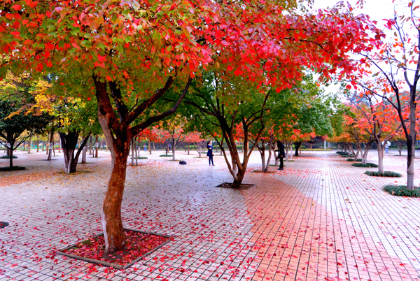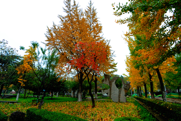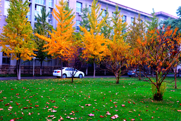 秋雨中的校园更加美丽