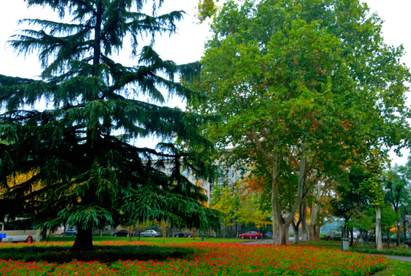 1场淅淅沥沥的春雨,津润着农年夜校园。魁伟挺秀的树木,颜色光明的树叶,浓深刻稀的花卉,把校园拆面得越发奇丽。信步校园,1步1景,好正在长远,爱正在内心。