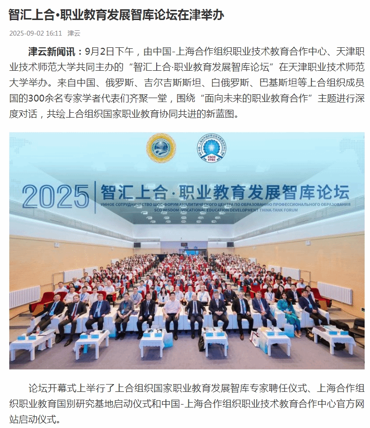 津云:智汇上合·职业教育发展智库论坛在津举办
